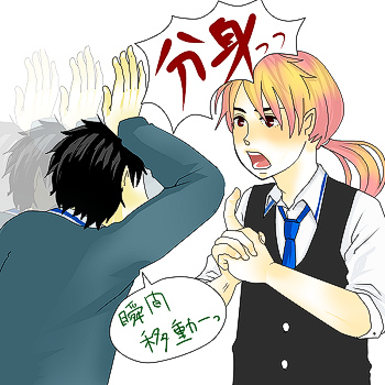 「!! しかし君が背後に立っているとおもってるぼくも 幻・影!(キラ)」